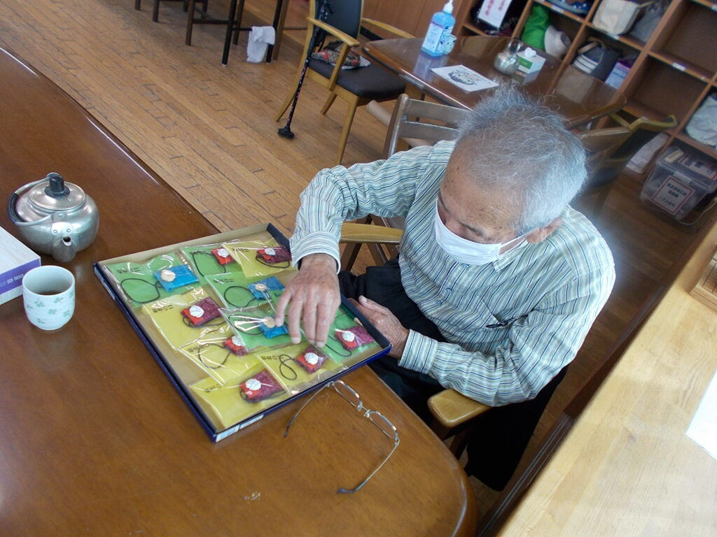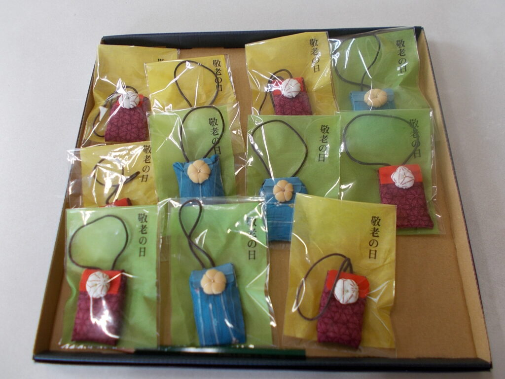 9月15日(月)敬老の日、ピース榛名では利用者様に手作りのお守りをお贈りしました。一つひとつ組飾りが異なるので、皆様真剣に選んでいました。カバンに付けている方もいらっしゃいます。