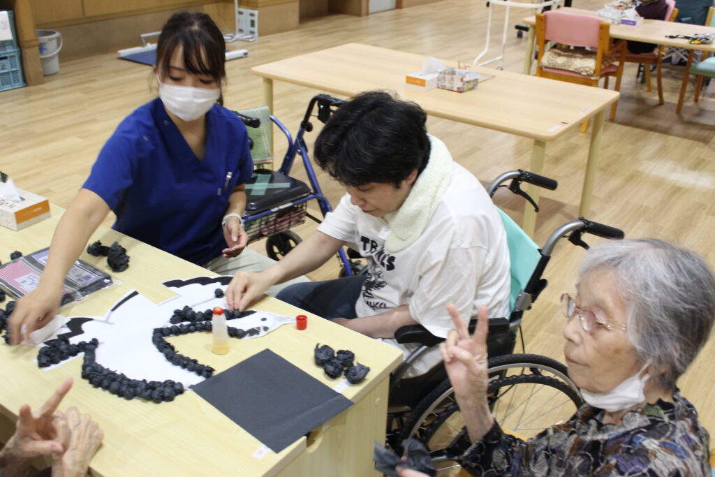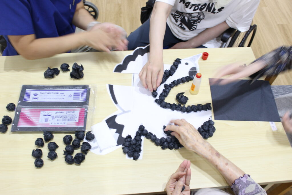 敬老会に向けて、フラワーペーパーで鶴と亀を制作しました。