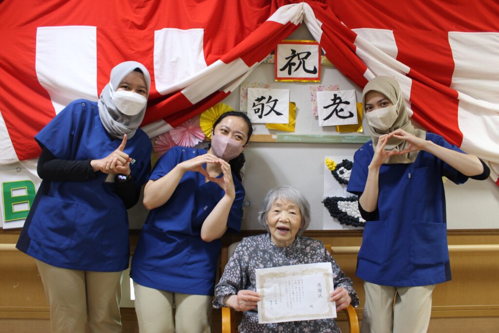 介護老人保健施設ケアピース(入所)では、9月17日(水)敬老会として、人生の経験を称え表彰式を行いました。表彰された入所者様は大変喜んでくださいました。また一年、皆様の笑顔がたくさん見られますように…