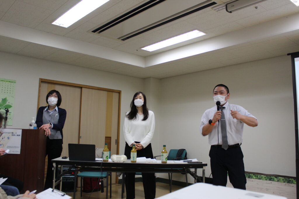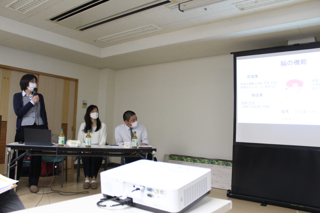 介護老人保健施設 和光園の副施設長 をお招きし、『アルツハイマー型認知症の症状を知ろう~症状を理解してケアに活かそう~』の研修を開催しました。スライドによる研修後、困難事例についてグループワークを行いました。認知症への理解を深め、利用者様の具体的な対応方法を改めて学びました。明日からの業務に活かしていきたいと思います。