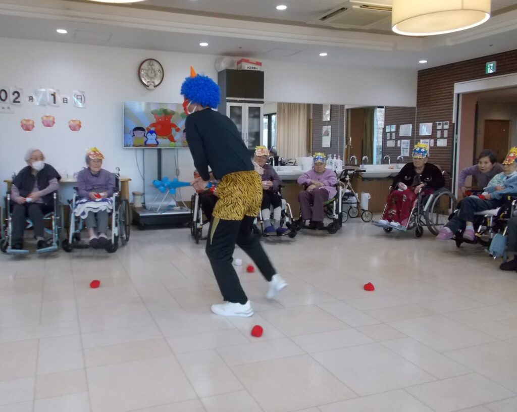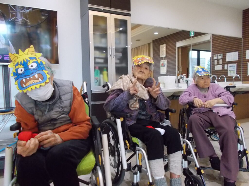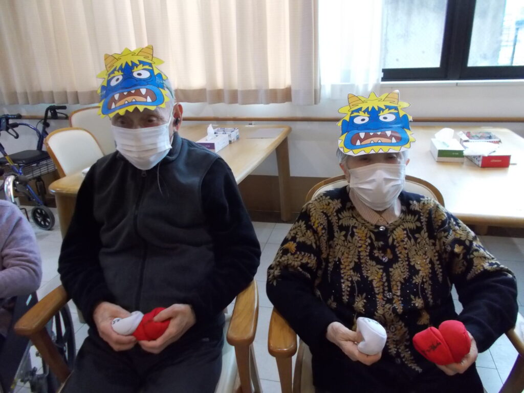 ほかほかライフでは、2月1日(日)に節分のイベントを開催しました。鬼に扮した職員を目掛けて豆まきを行い、今年の厄払いをしました。おやつの時間に甘納豆を召し上がっていただき、笑いあり楽しい節分となりました。皆様の無病息災をお祈りいたします。