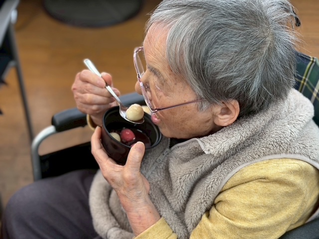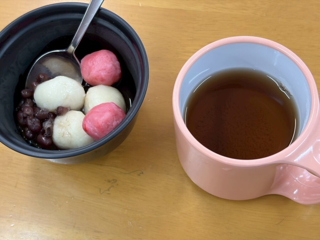 皆様手作りのやわらかくふわふわの『白玉だんご』は、甘い小豆と共に召し上がりました。