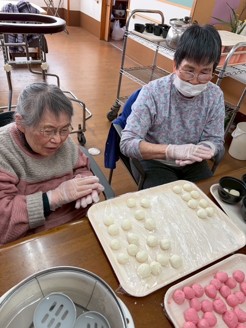 おやつ作りは、『白玉だんご』。感染症対策の下、皆様でお団子を丸めていただきました。